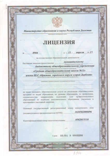 Полное наименование образовательной организации* Муниципальное бюджетное общеобразовательное учреждение городского округа "город Дербент" "Средняя общеобразовательная школа № 11" им. Ш.С. Абрамова Республики Дагестан